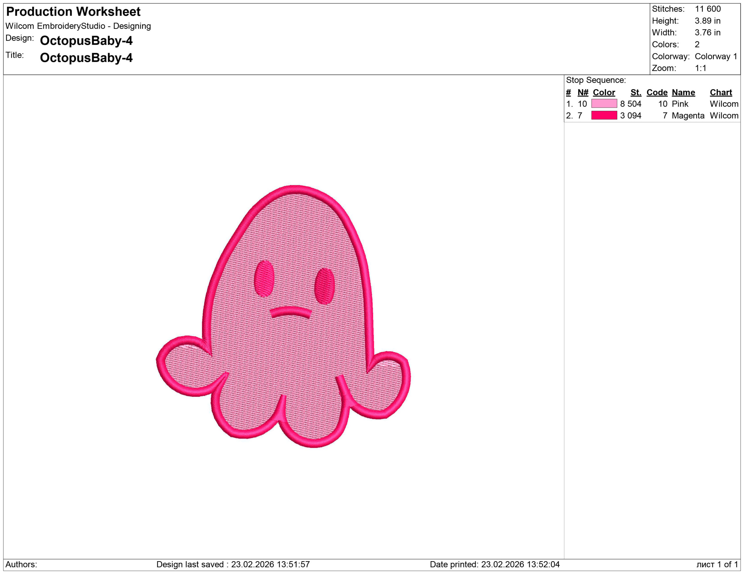 Baby Octopus Embroidery design files for machine embroidery