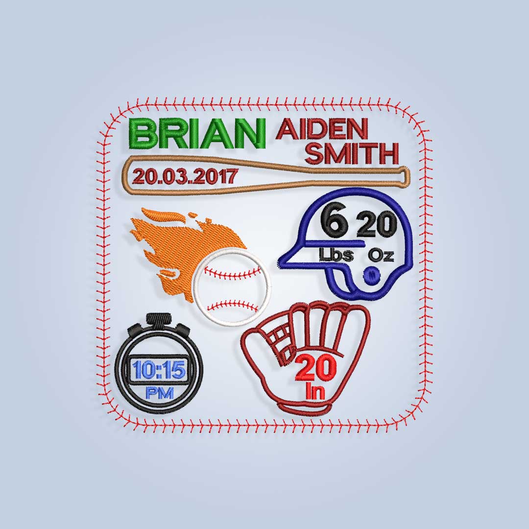Baby Birth Embroidery design files inspired by Baseball