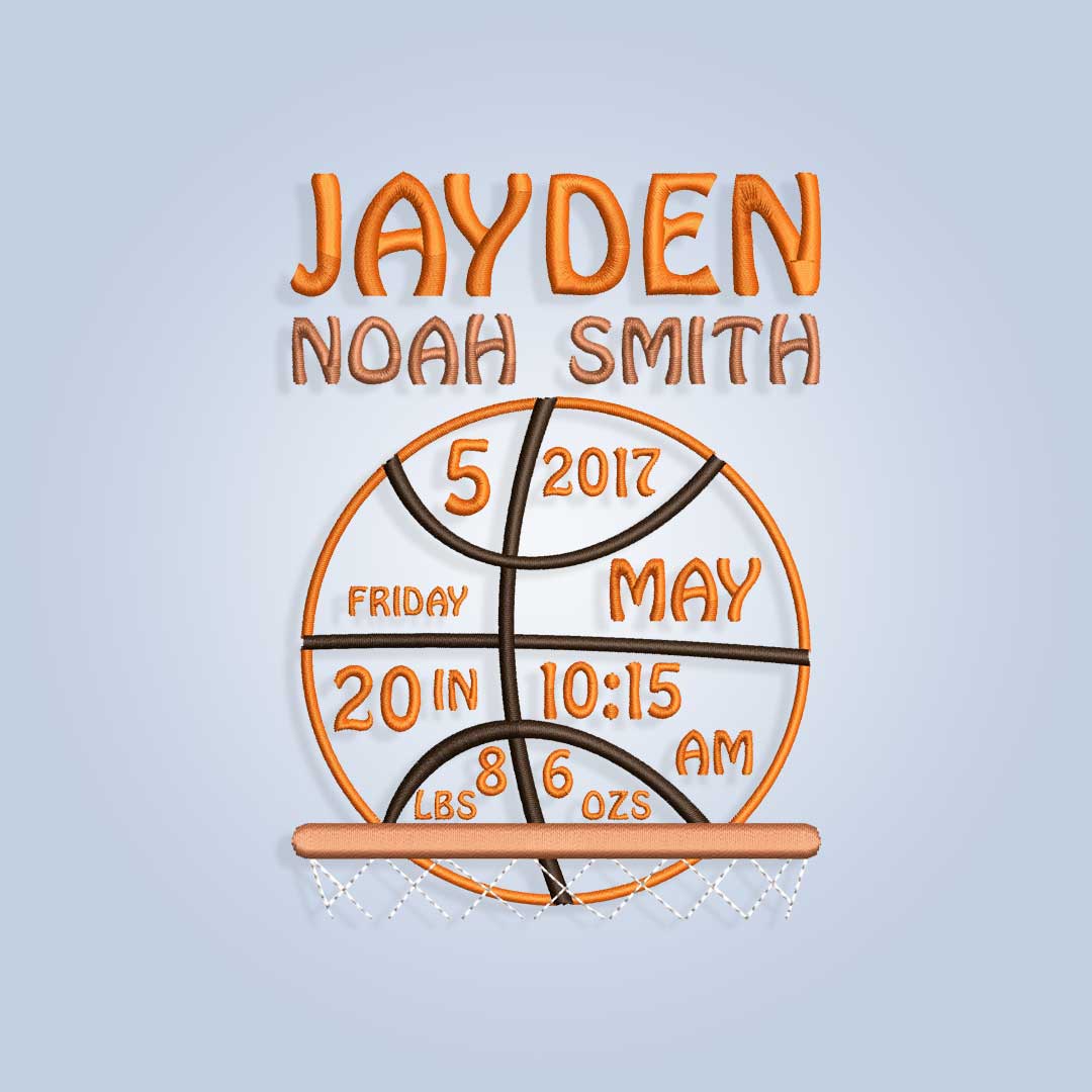 Basketball Baby Birth Announcement Embroidery design files for embroidery machine