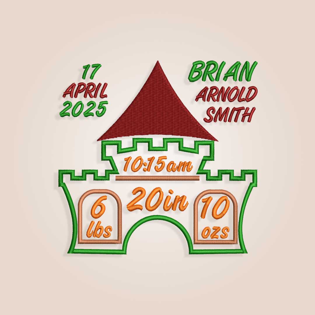 Castle Baby Birth Announcement Embroidery design files for embroidery machine