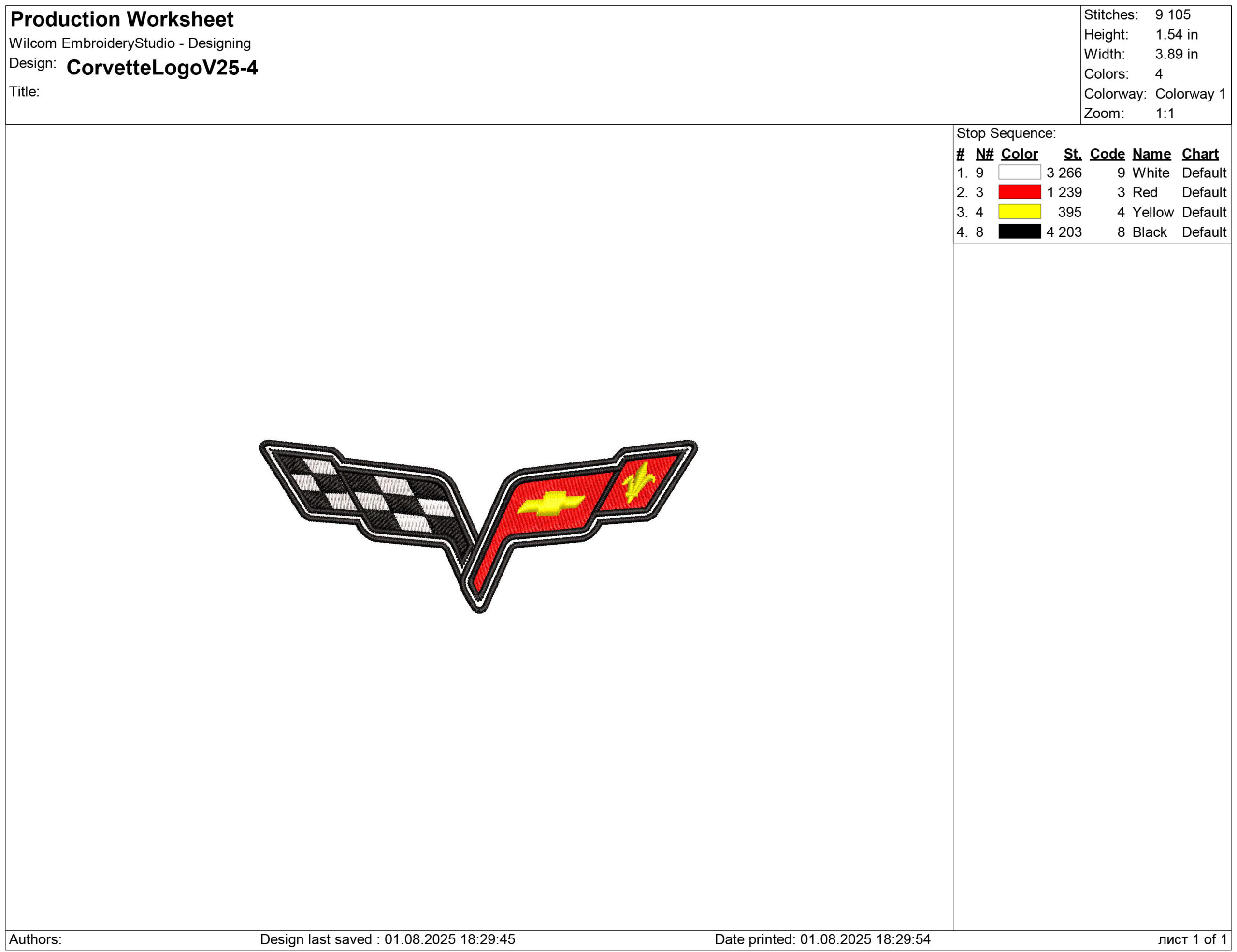 Corvette logo Embroidery design