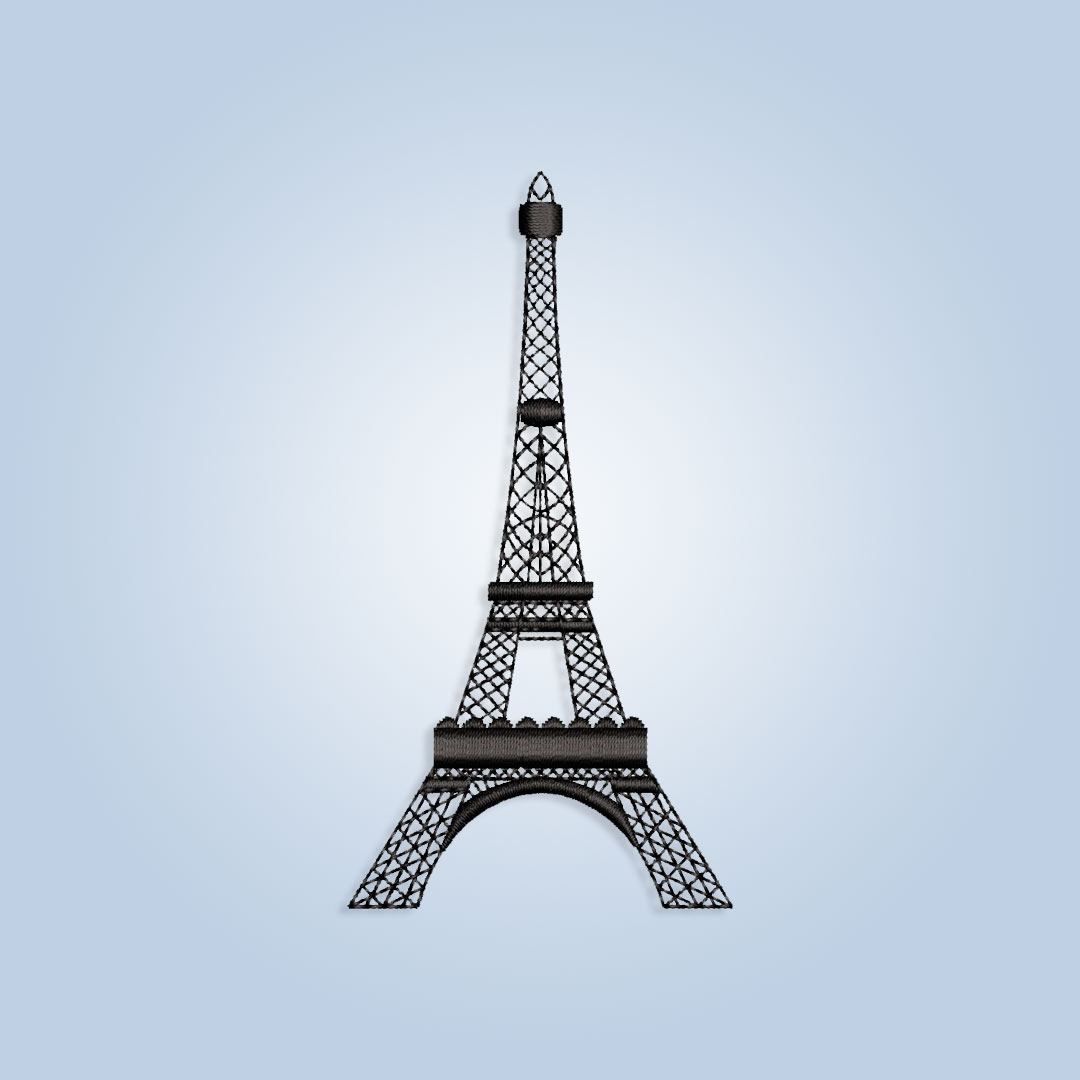 Eiffel Tower Embroidery design files for machine embroidery. Formats: pes, csd, dst, exp, hus, jef, sew, xxx, vp3. Sizes: 2″ 3″ 4″ 5″ 6″ 7″ 8″ 9″ 10″