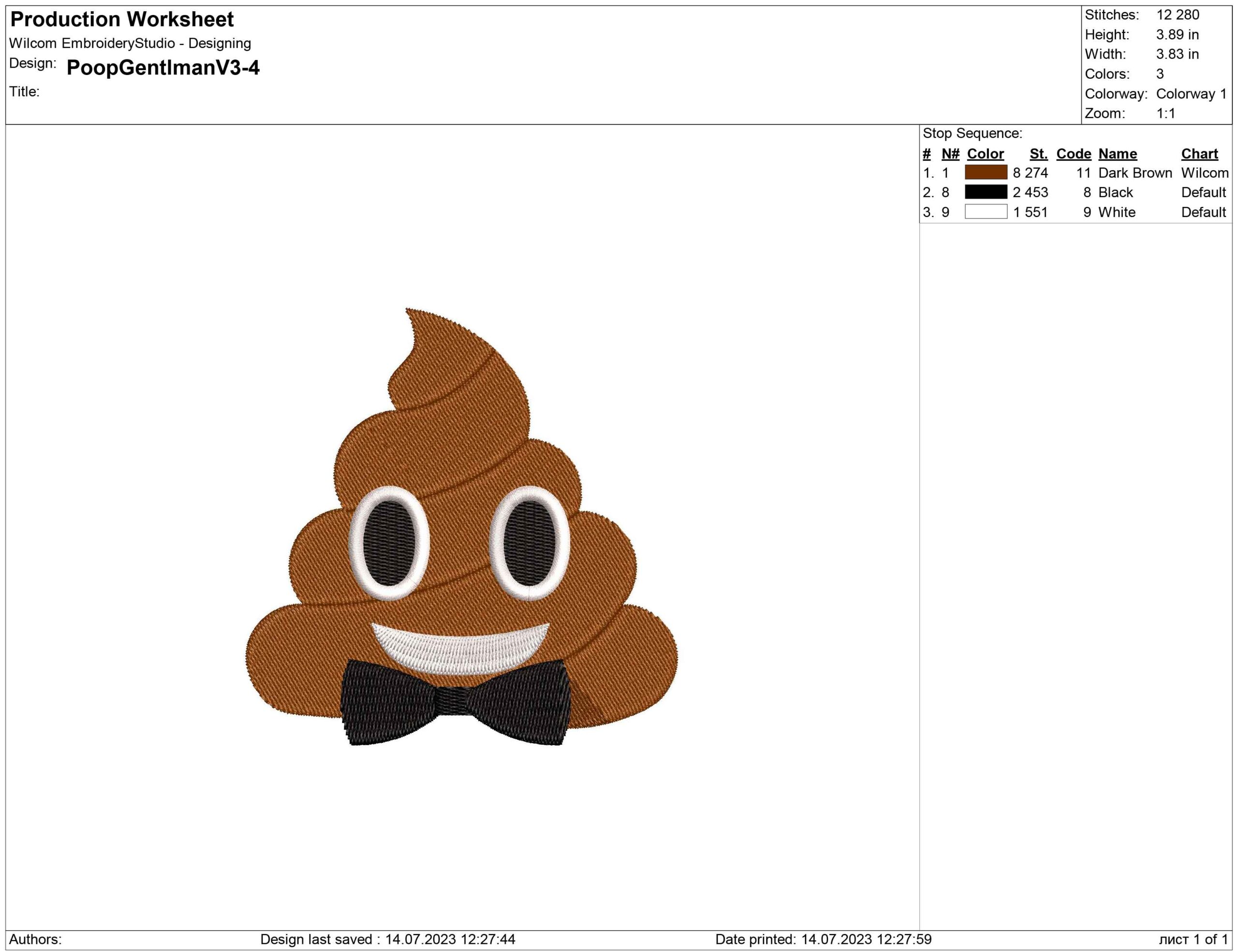 Gentlemans Pile of Poo Machine embroidery design INSTANT DOWNLOAD files.