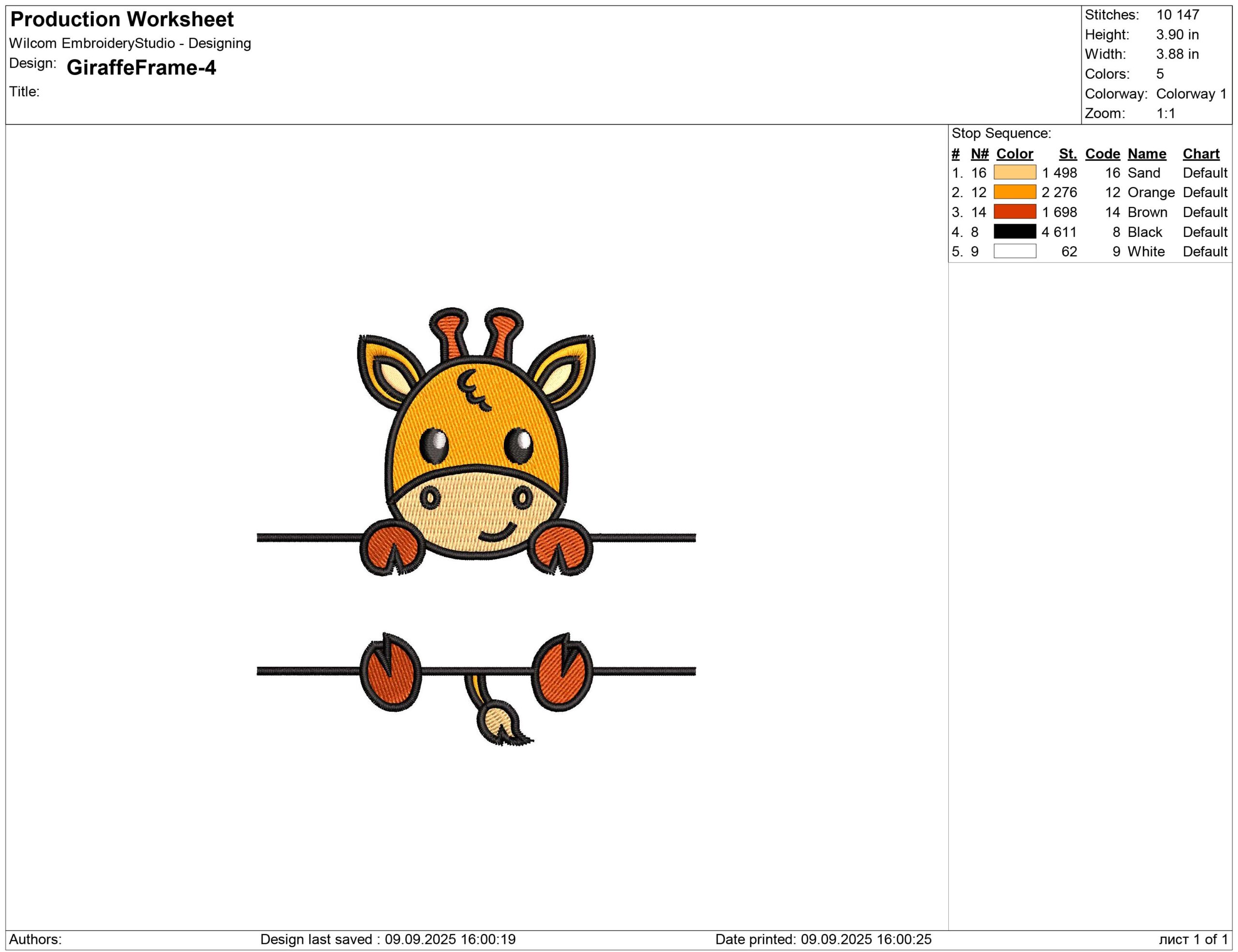 Giraffe holds name frame Embroidery design files for embroidery machine