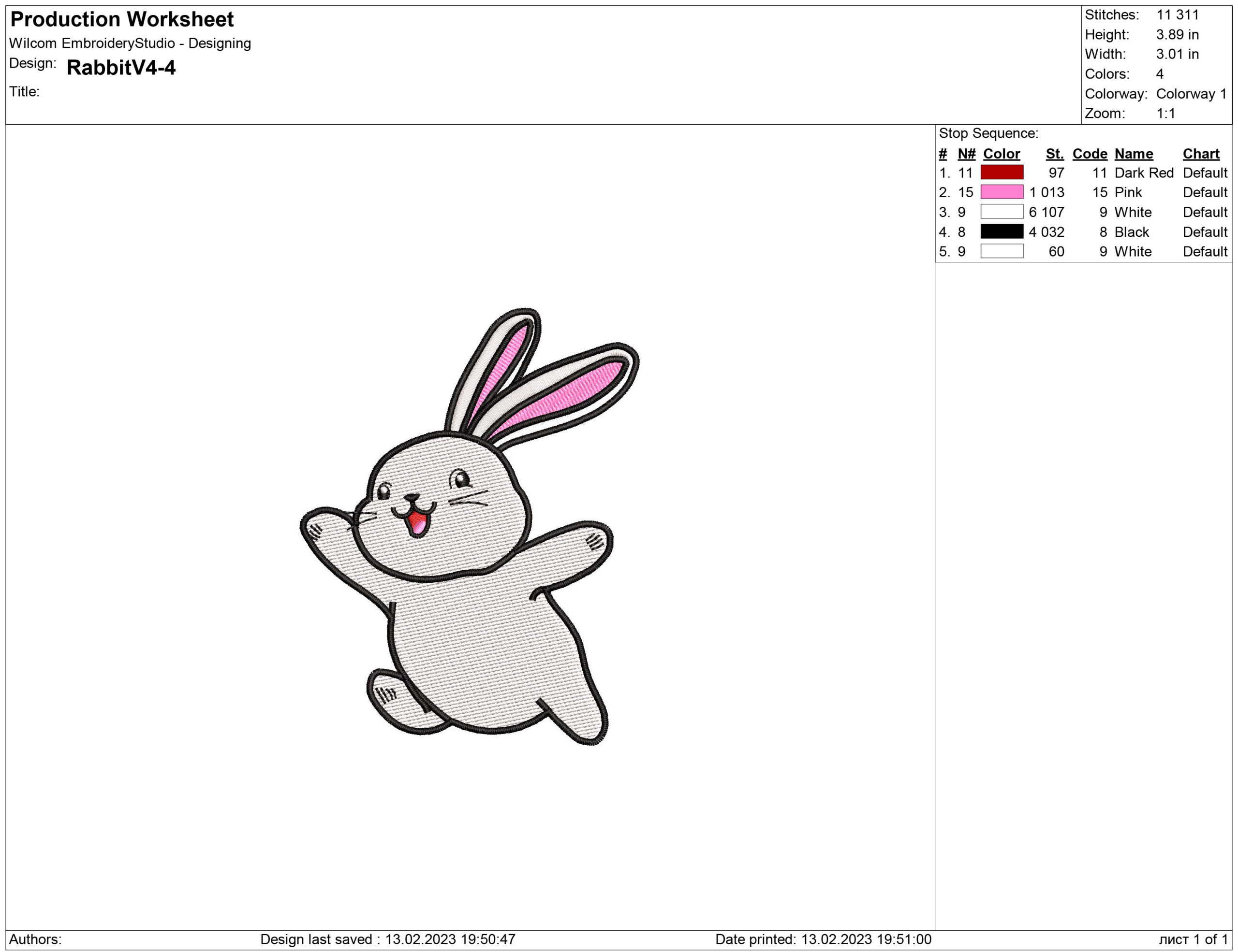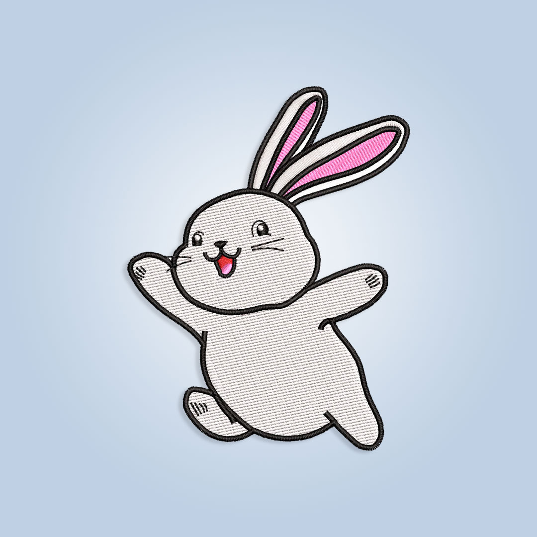 Happy Bunny Embroidery design files for machine embroidery. Formats pes, csd, dst, exp, hus, jef, sew, xxx, vp3, u??. Sizes:  2″ 3″ 4″ 5″ 6″ 7″ 8″ 9″ 10″