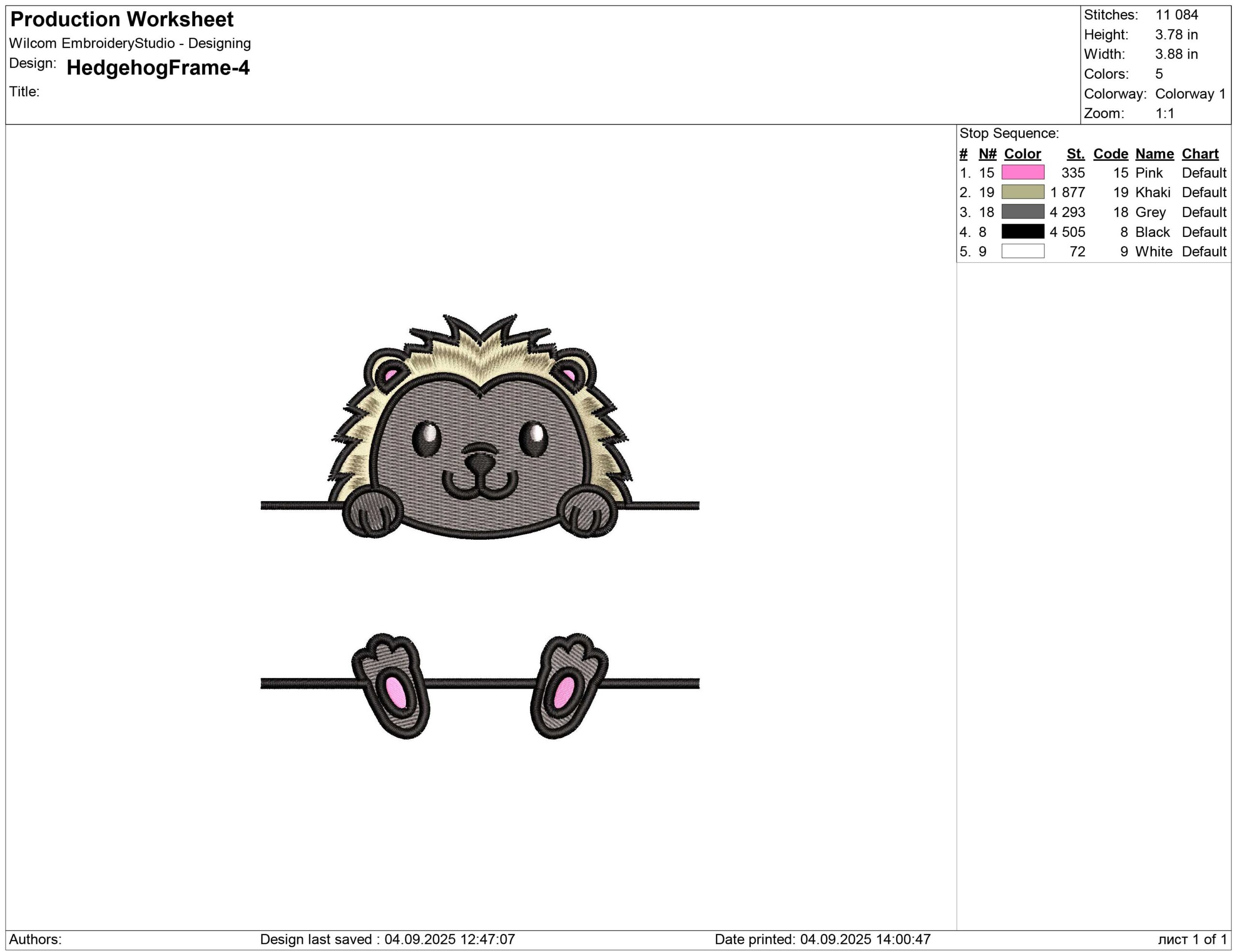 Hedgehog holds name frame Embroidery design files for embroidery machine