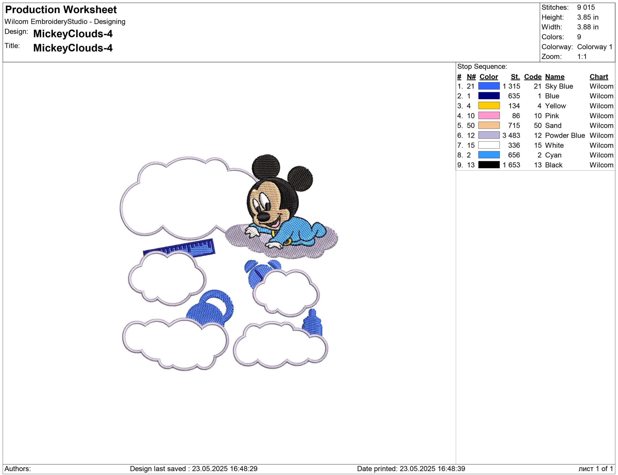 Mickey Mouse Baby Birth Announcement Embroidery design files for embroidery machine. Formats pes, csd, dst, exp, hus, jef, sew, xxx, vp3, u??. Sizes: 4″ 5″ 6″ 7″ 8″