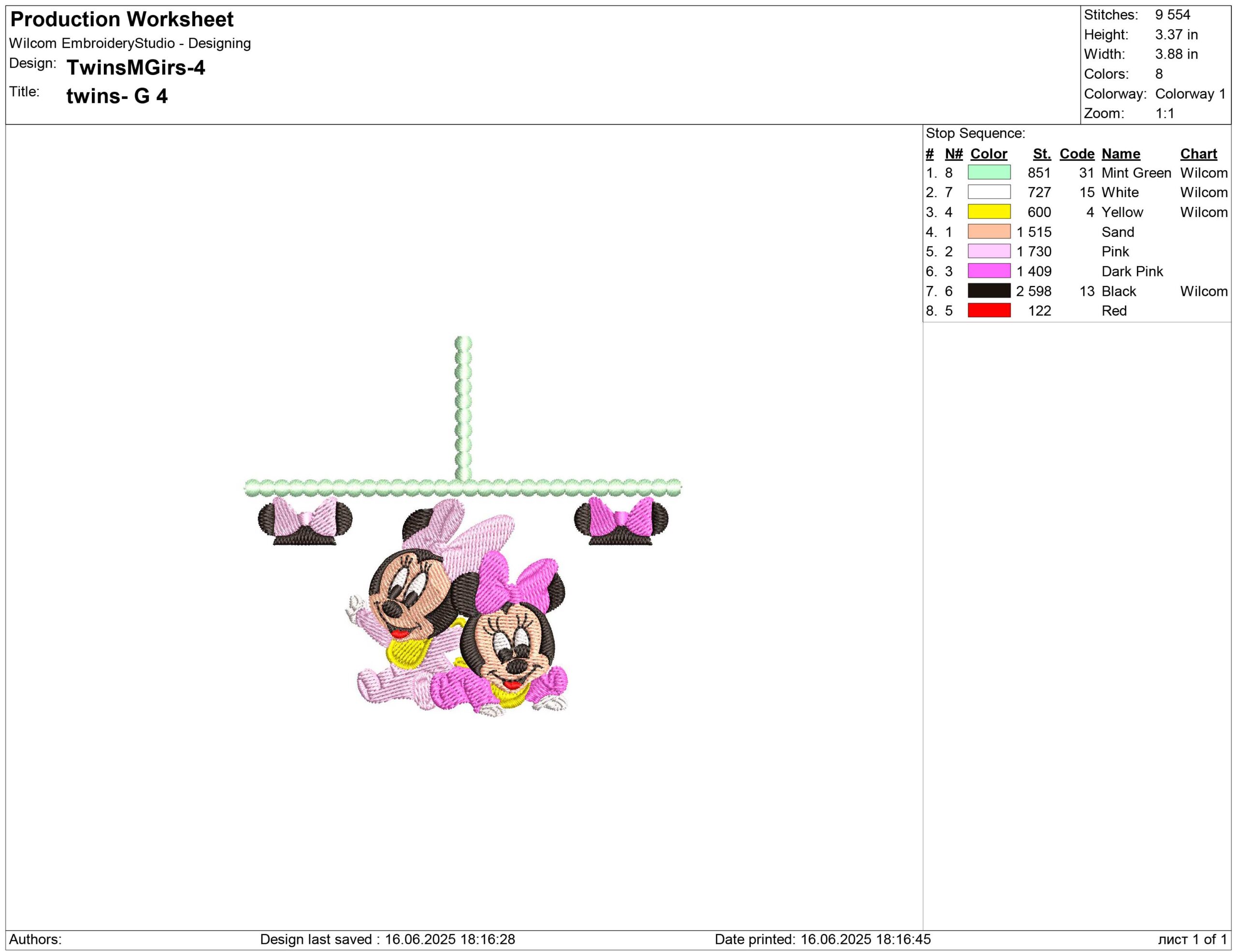 Minnie Mouse Twins Girls Baby Birth Announcement Embroidery design files for Machine Embroidery