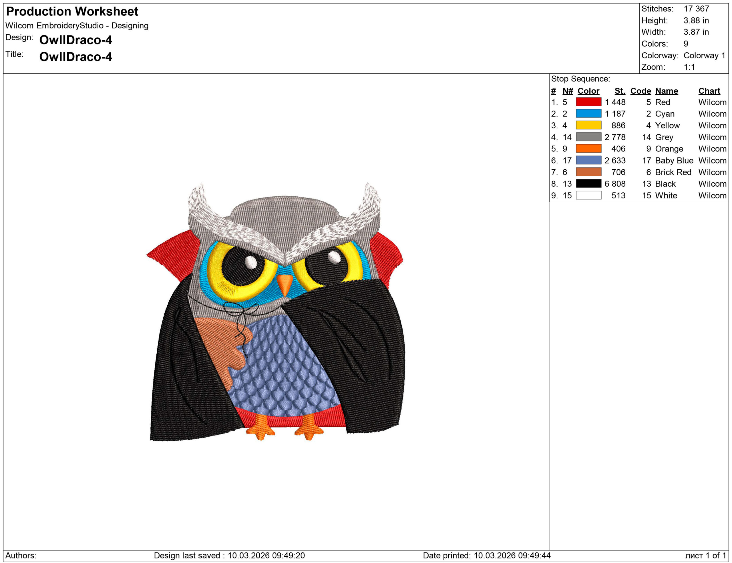 Owl in Cloak Embroidery design files for Machine Embroidery