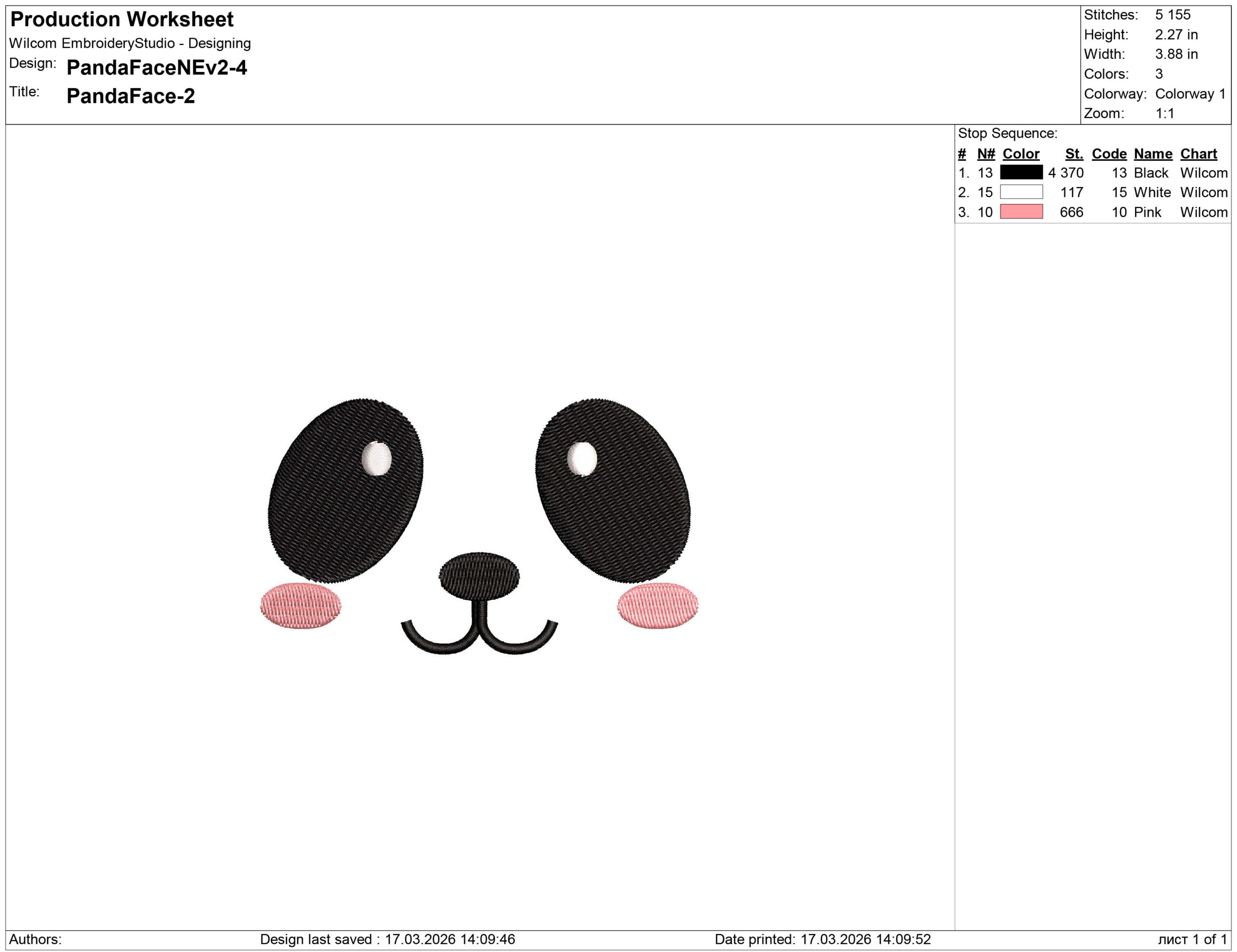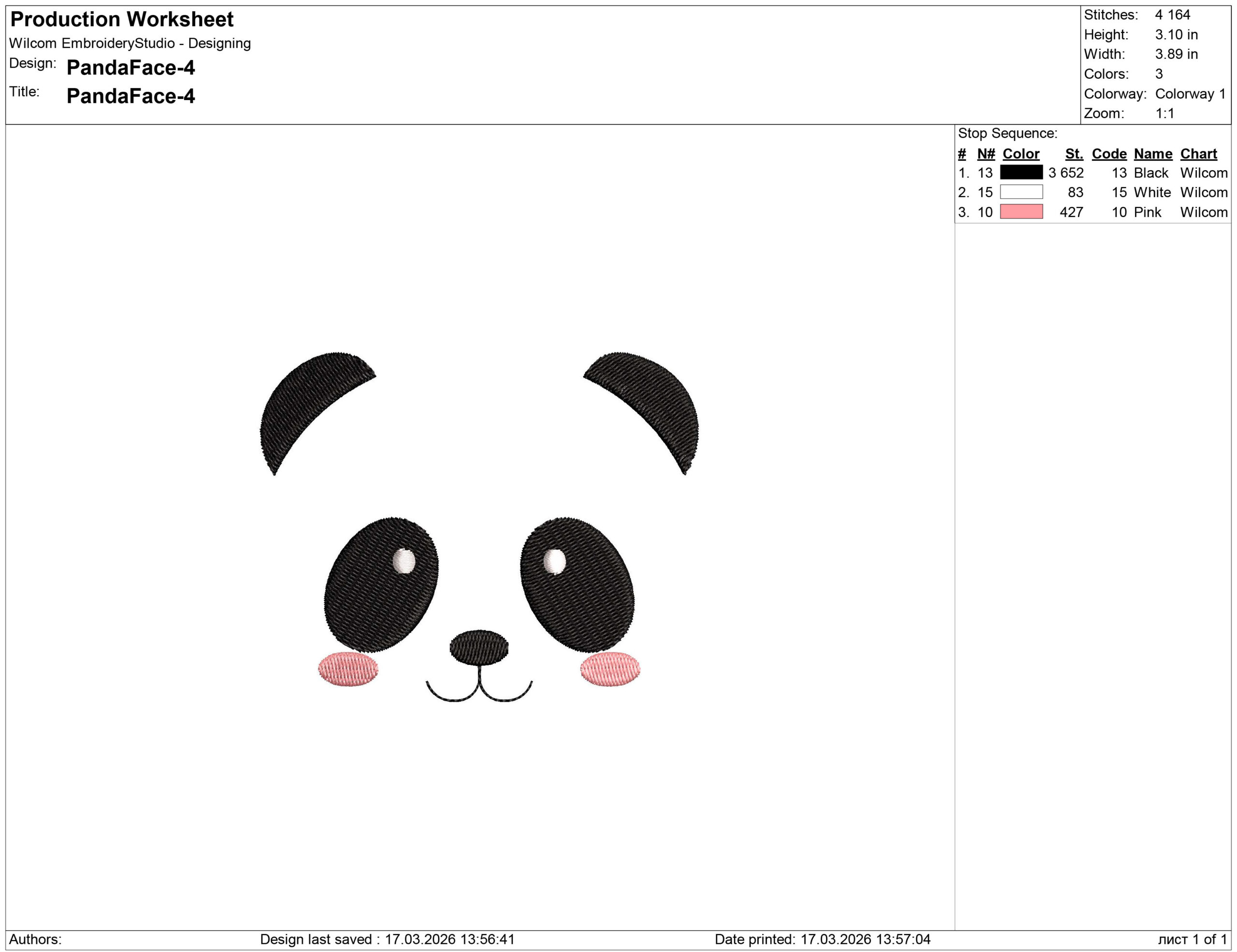 Panda face Embroidery design files for machine embroidery. Formats pes, csd, dst, exp, hus, jef, sew, xxx, vp3. Sizes:  1″ 2″ 3″ 4″ 5″ 6″ 7″ 8″ 9″