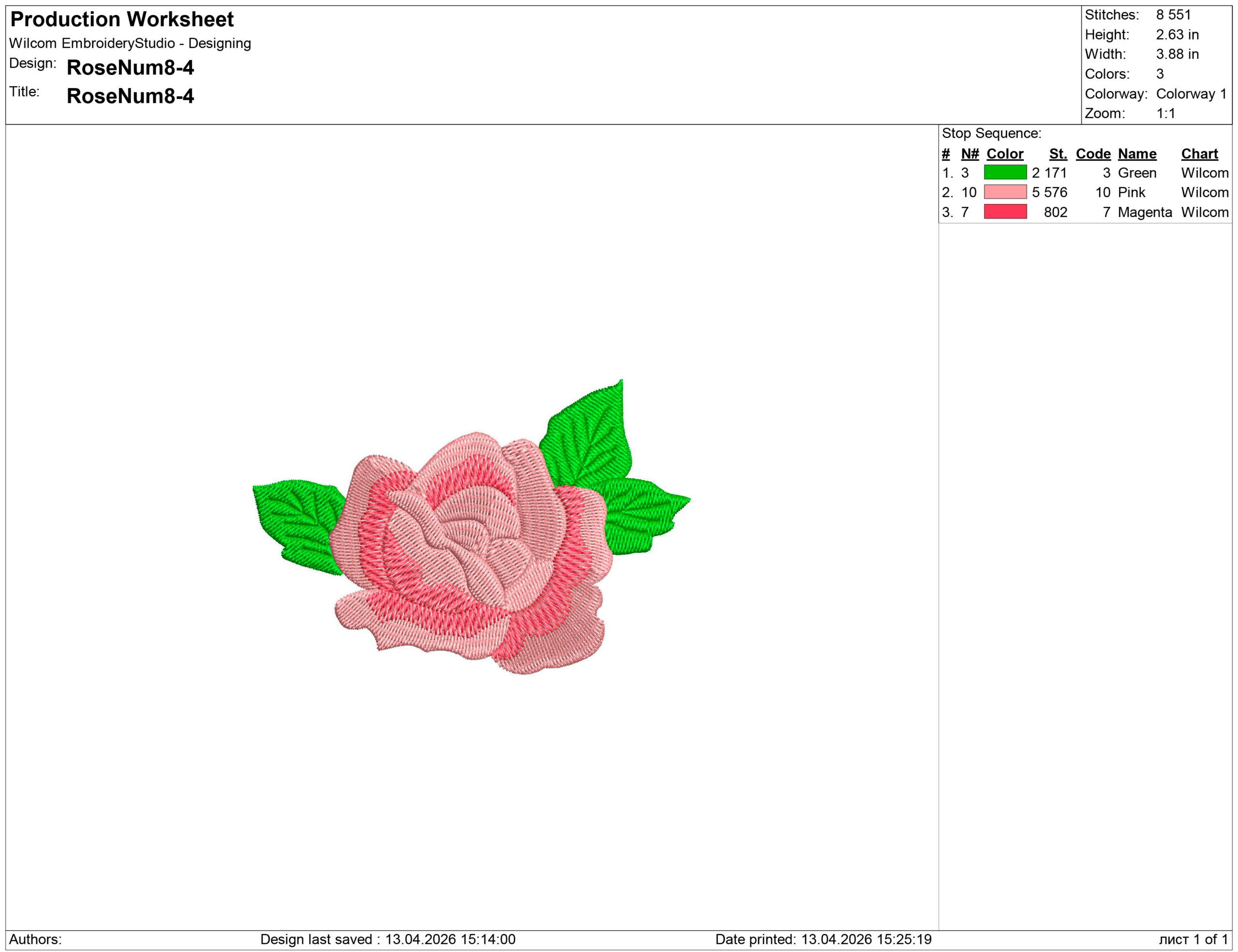 Three Leaves Rose Flower Embroidery design files for machine embroidery. Formats pes, csd, dst, exp, hus, jef, sew, xxx, vp3 Sizes 1″ 2″ 3″ 4″ 5″ 6″ 7″ 8″ 9″ 10″